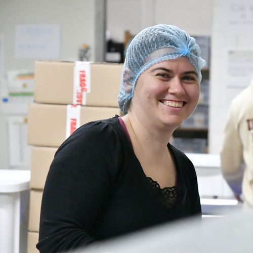 Laurianne est non seulement la dernière arrivée dans l'atelier mais c'est surtout la petite protégée de ses collègues au conditionnement qui adorent son esprit pétillant et ses phrases avisées. Laurianne aime les bons fromages et jouer avec les mots : on peut toujours comté sur elle pour mettre l'ambiance.